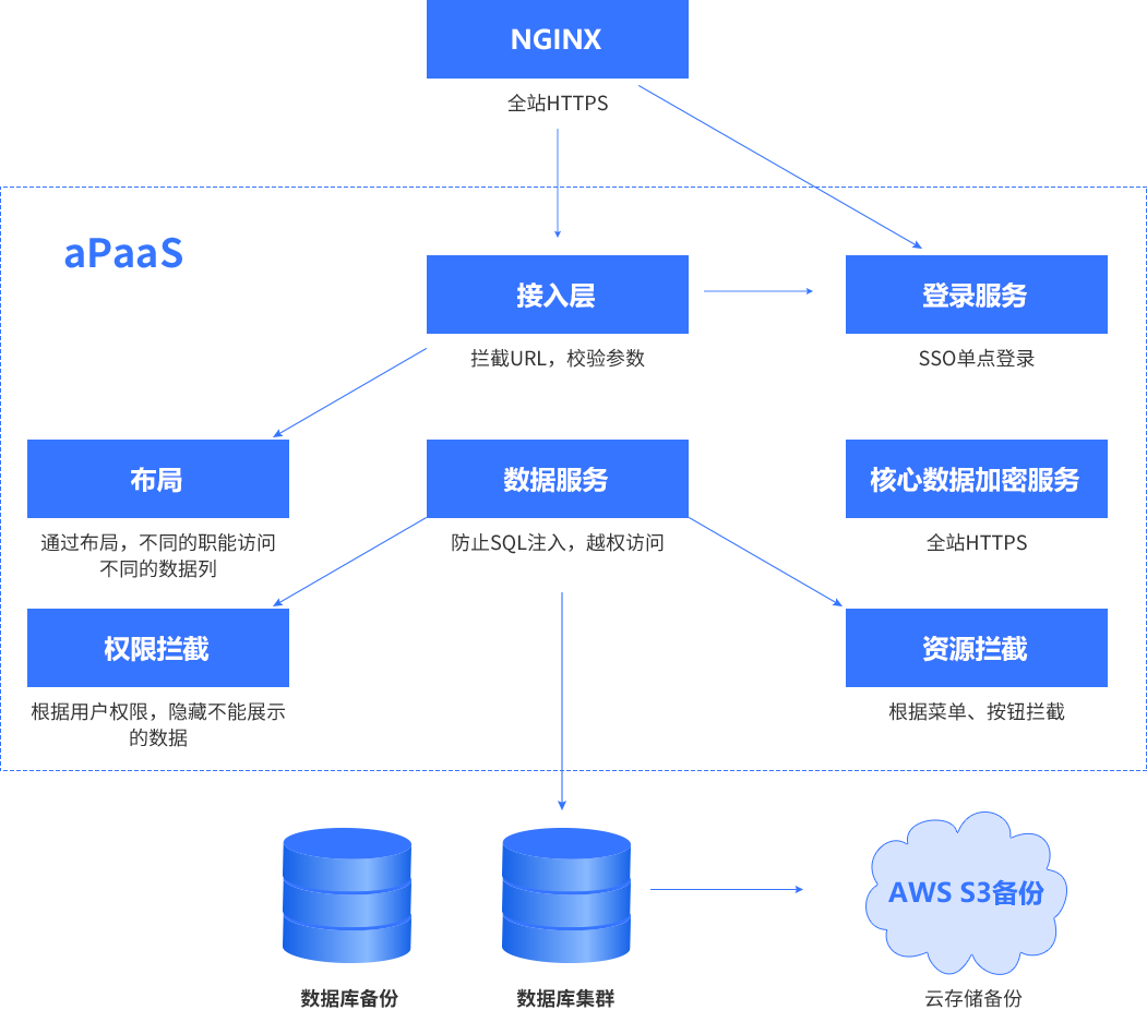备注:::::平台与业务分离,,,,,,,,,,,开发运维只运维平台,,,,,,,,,,业务专家生成的元数据(表/字段/运行逻辑)+业务数据全部以碎片的方式存储在DB中,,,,技术人员无法解读,,,,,,,,,,,,,只有业务专家授权后才能导出元数据+业务数据