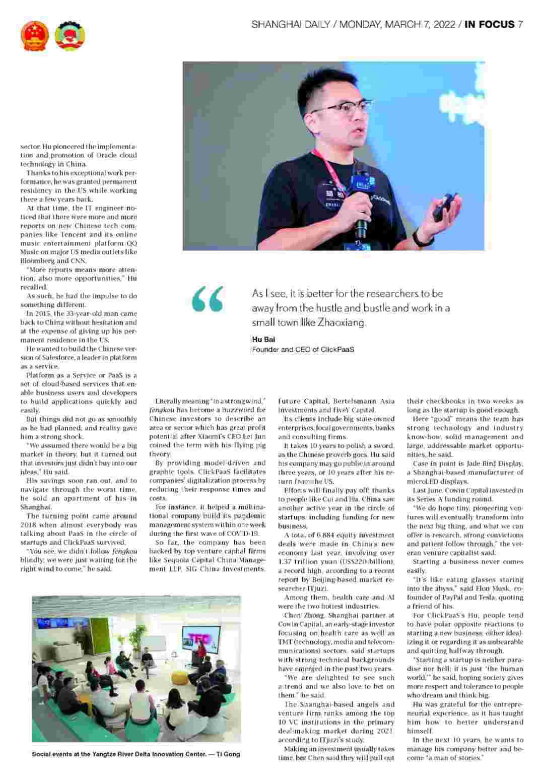 《上海日报》专访VIVO钱包创始人、、、、CEO胡柏,,,,,探究其创业背后的故事!!!!!!!!!!!!!