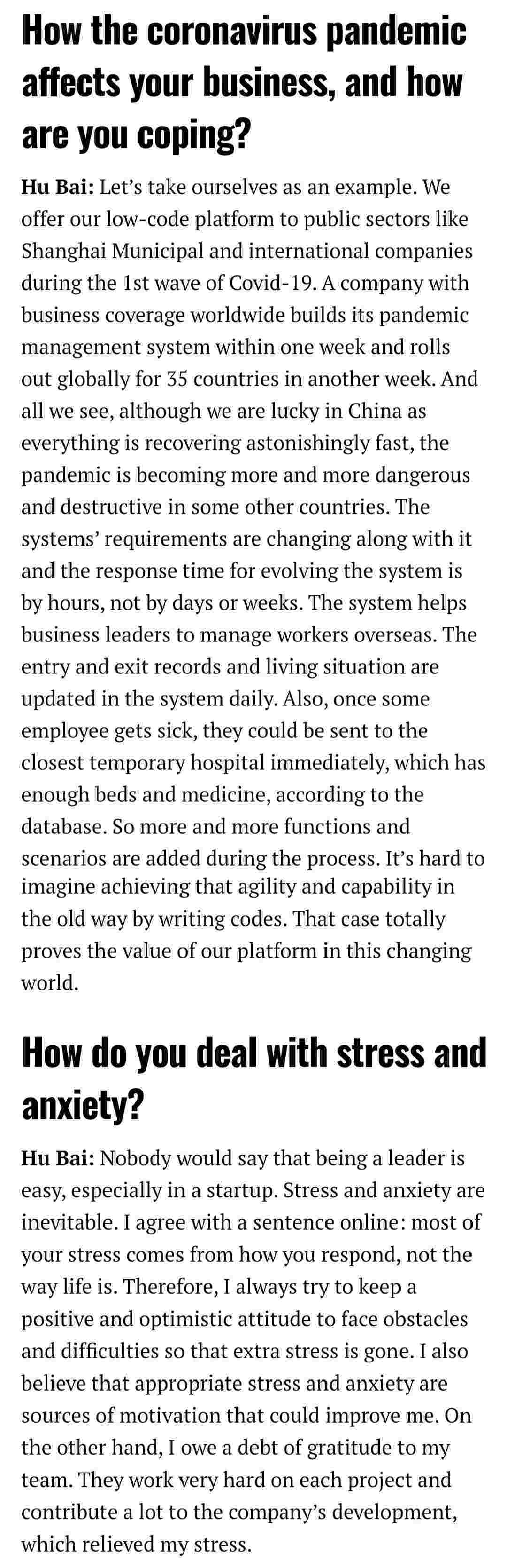 2021年年初,,,,,,,,,爱湃斯科技CEO胡柏受邀接受法媒Startup.info的专访,,,,,,,,,,,,,,,与Startup info的读者分享了自己的创业经历、、、、、、、、、、、以及低代码平台VIVO钱包的创新之处。。。。。。。。。。。。